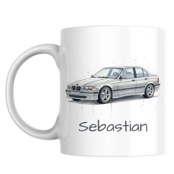 Kubek BMW E36 sedan srebrne z dowolnym imieniem