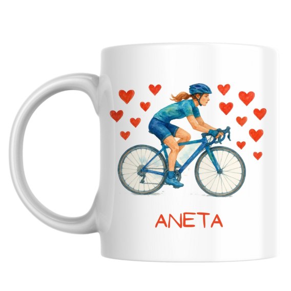 Kubek Dziewczyna na rowerze z dowolnym imieniem