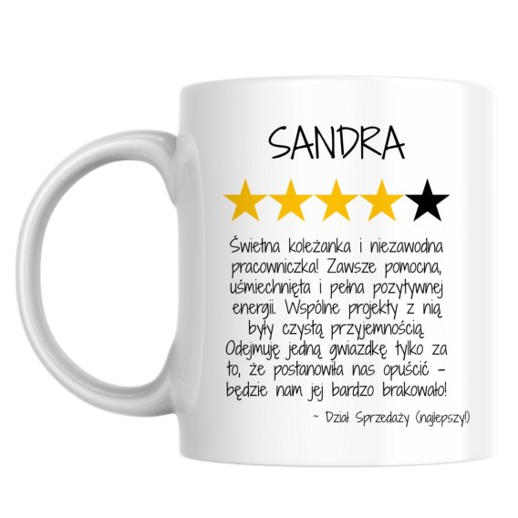 Kubek Opinia koleżanki na odejście z pracy z dowolnym imieniem