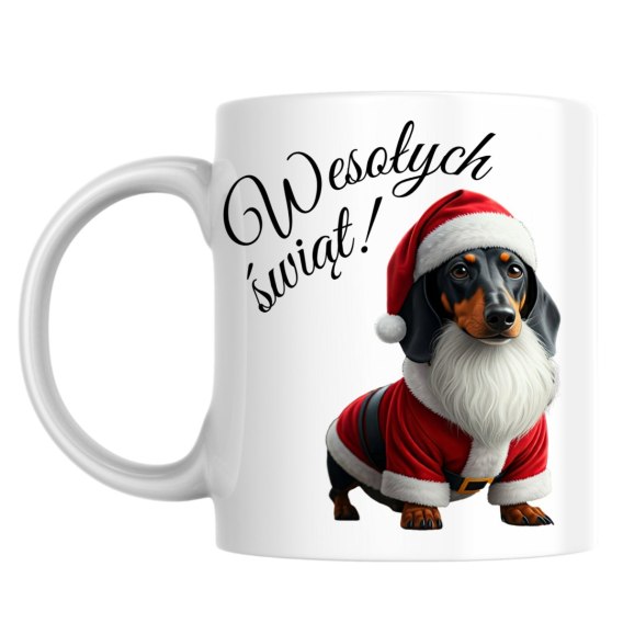 Kubek Pies Jamnik w stroju Świętego Mikołaja