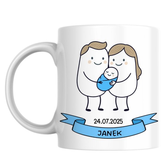 Kubek Świeżo upieczeni rodzice - syn z dowolnym imieniem i datą
