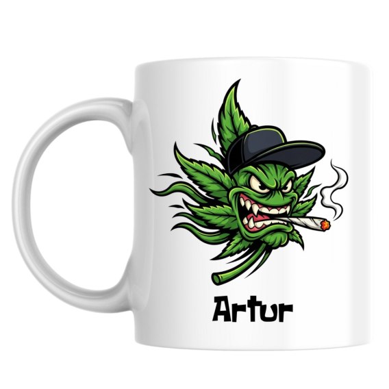 Kubek Wściekły liść marihuany z dowolnym imieniem
