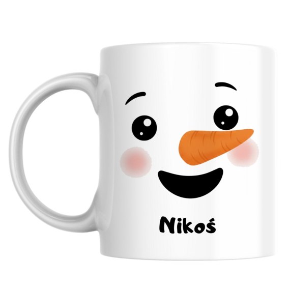 Kubek z buzią bałwanka chłopiec z dowolnym imieniem