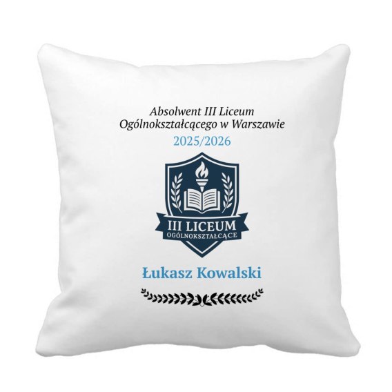 Poduszka Absolwent z dowolnym imieniem, logo i nazwą szkoły