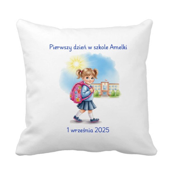 Poduszka Pierwszy dzień w szkole - dziewczynka z dowolnym imieniem i datą