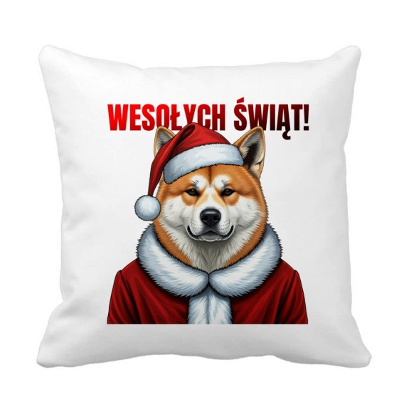 Poduszka Pies Akita w stroju Świętego Mikołaja