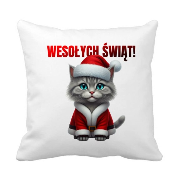 Poduszka Siwy kot w stroju Świętego Mikołaja
