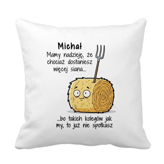 Poduszka na odejście z pracy - siano z dowolnym imieniem