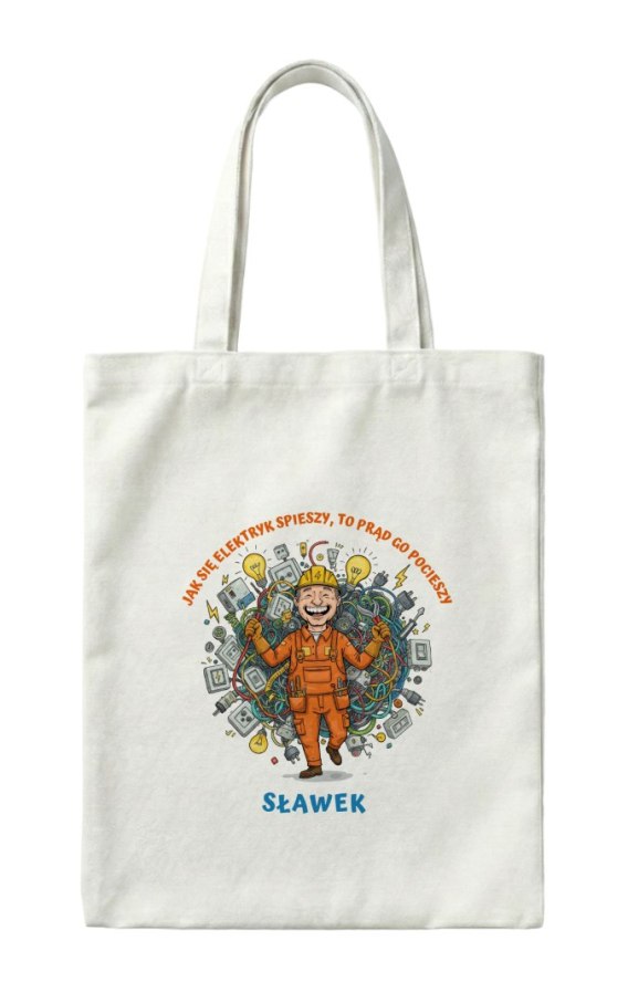 Torba Jak się elektryk spieszy to go prąd pocieszy z dowolnym imieniem