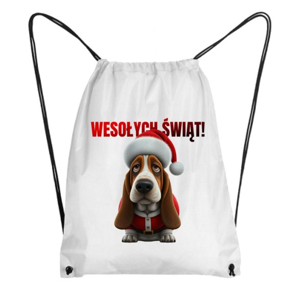 Worek Pies Basset hound w stroju Świętego Mikołaja