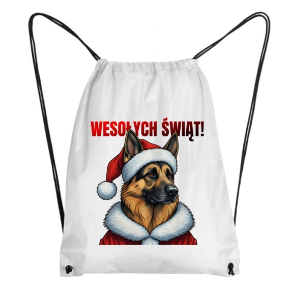 Worek Pies Owczarek niemiecki w stroju Świętego Mikołaja