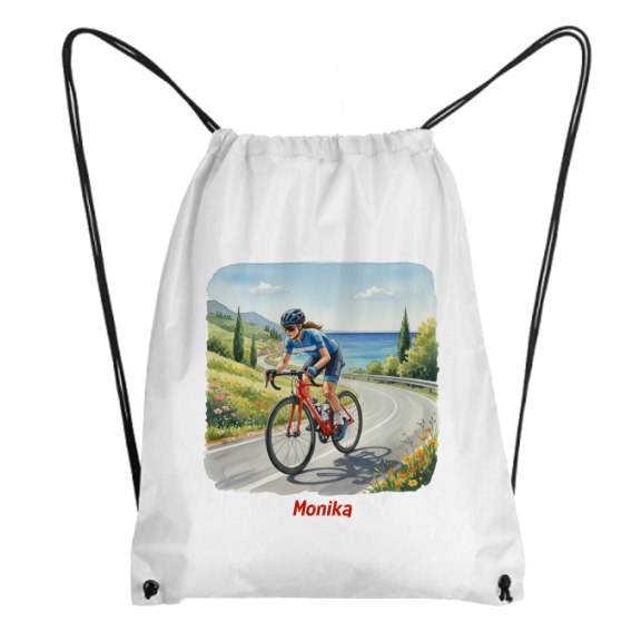 Worek dziewczyna na rowerze szosowym z dowolnym imieniem