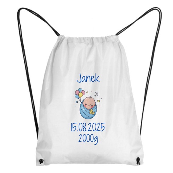 Worek z metryczką noworodka - chłopiec z dowolnym tekstem