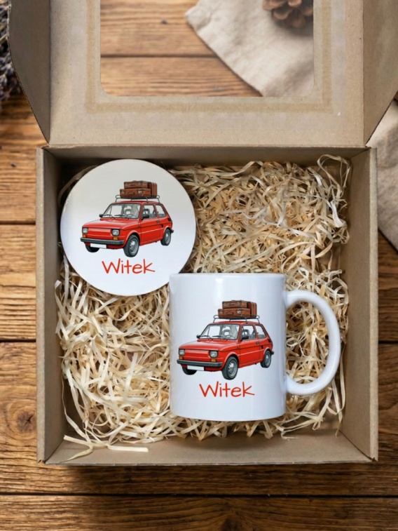 Zestaw prezentowy Fiat 126p Maluch - kubek + podkładka