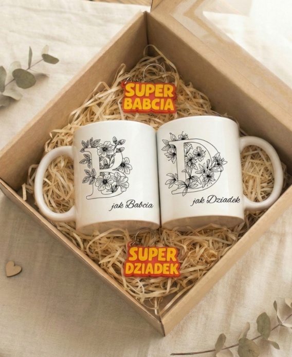 Zestaw prezentowy kubki D jak Dziadek i B jak Babcia +breloczki