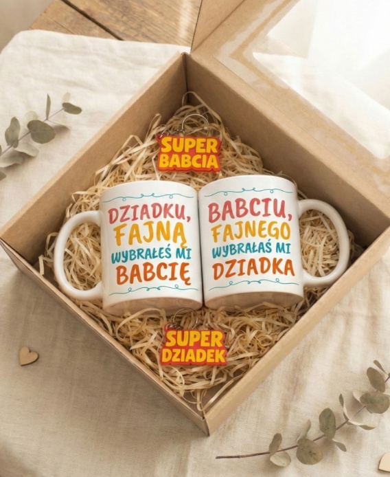 To prezent, który rozczula od pierwszego spojrzenia. Taki zestaw to świetna niespodzianka od wnuków. Wyobraź sobie miny babci i dziadka, kiedy otworzą pudełko i zobaczą swoje imiona na pięknych kubkach – wzruszenie, zaskoczenie i śmiech gwarantowane.